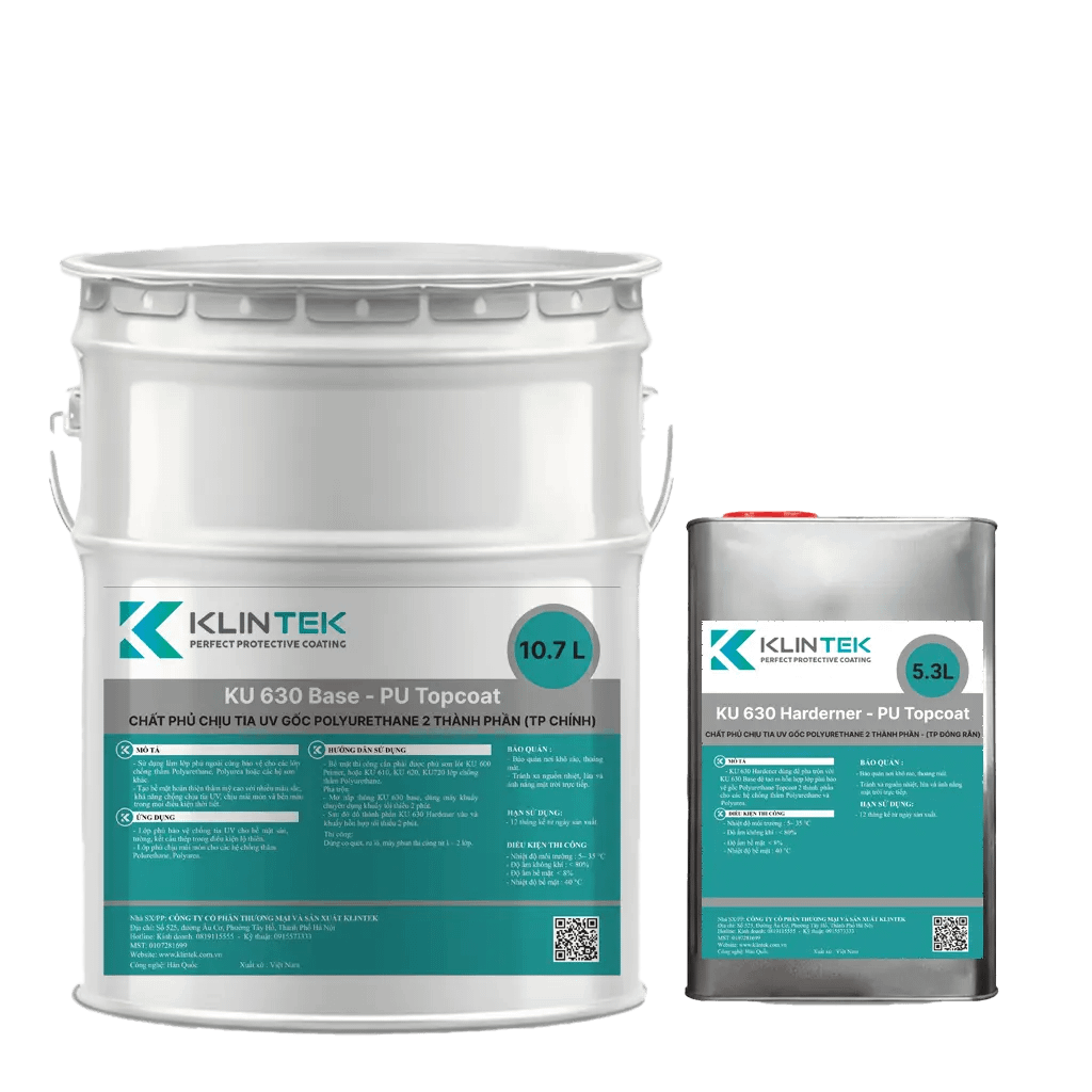 KU 630 là chất phủ gốc Polyurethane 2 thành phần dùng để làm lớp phủ bảo vệ ngoài cùng cho các lớp chống thấm gốc Polyurethane, Polyurea và các hệ sơn khác.